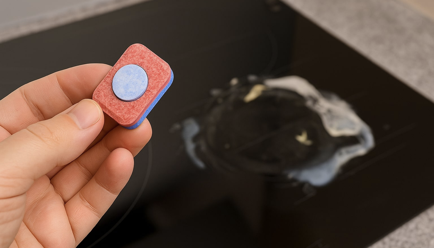 Veel mensen schrapen, boenen of gebruiken agressieve chemische middelen in de hoop aangebrande plekken snel te verwijderen. Helaas kan dit het oppervlak beschadigen, het vuil verder verspreiden of simpelweg niets uithalen. Zelfs sterke reinigers kunnen moeite hebben met de harde korst die ontstaat wanneer iets overkookt. Een vaatwastablet werkt heel anders. In plaats van agressieve chemicaliën komen er langzaam enzymen, ontvettende stoffen en reinigingsmiddelen vrij die de aanslag losweken zonder te schrobben. Maar dit werkt alleen als je de tablet eerst oplost. Een tablet rechtstreeks over het fornuis wrijven doet weinig en kan krassen veroorzaken.
